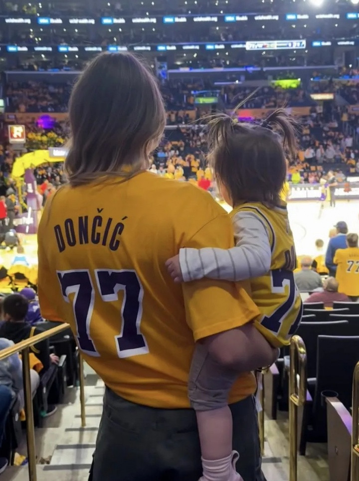 2023年7月7日,他特意选择这个与自己球衣号码"77"相关的日子,在斯洛文尼亚风景如画的布莱德湖向她求婚。湖水如镜,倒映着两人的身影,仿佛时间都愿意为他们停留。同年11月,大女儿加布里埃拉在美国出生。一切看起来,都是爱情最美好的模样。